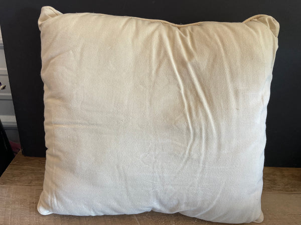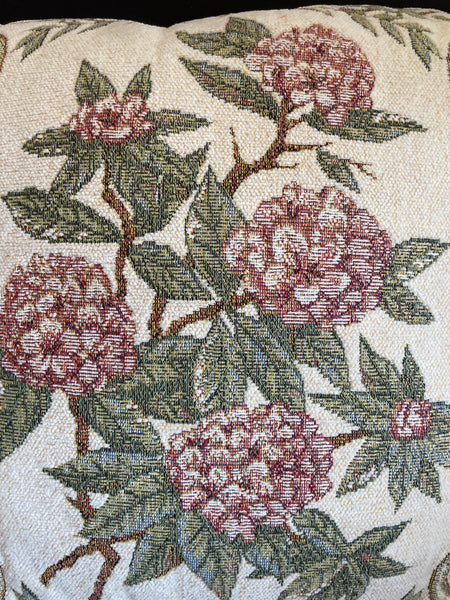Tapestry Look Throw Pillow Flowers Neutral Colors Beige Green Rust Blue Back