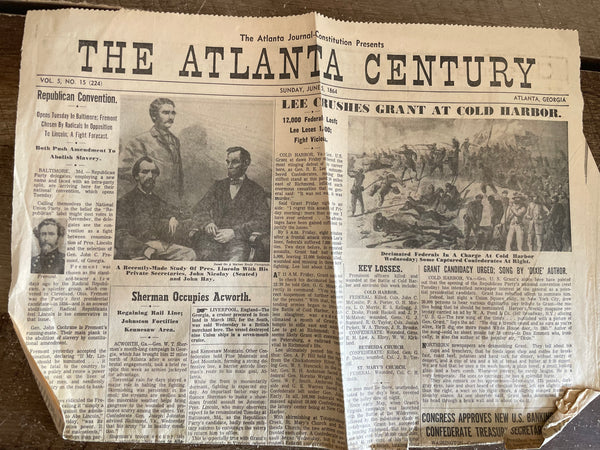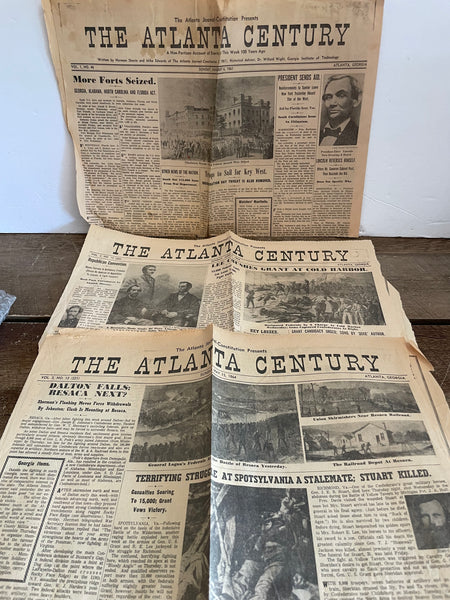 ANTIQUE 3 Front Pages The ATLANTA CENTURY Georgia Newspaper 1861 & 1864 CIVIL WAR