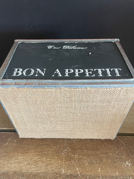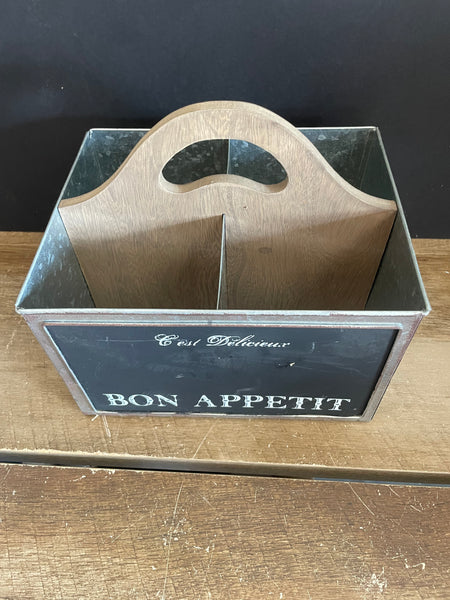 Bon Appetit Utensil Caddy Wood Handle Tin 4 Divided Compartments