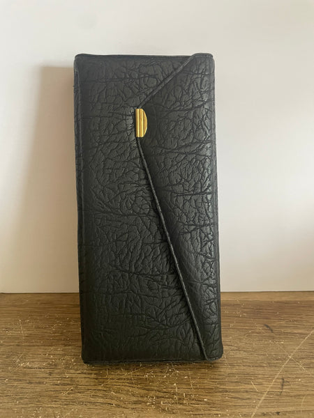 Black faux leather snap closure case, 8.5” X 4” x 1.25”
